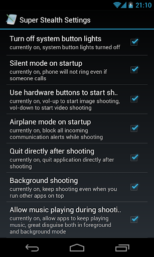 - show the device's desktop, run other apps on top or even put it to standby mode while silently shooting in the background