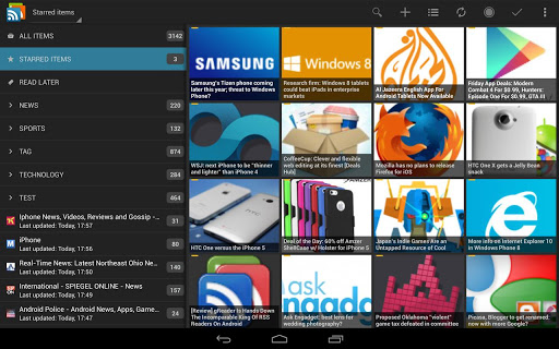 Overview:gReader is a simple, fast and intuitive feed/rss reader for Android, featuring beautiful themes, podcast support and full offline support.