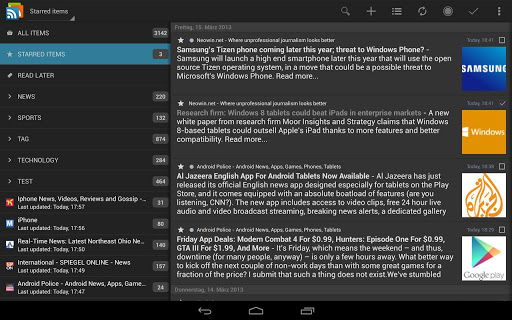 * Synchronization: Use gReader at home, at your office, or anywhere you go and keep your feeds, tags and shared items synched in one place.