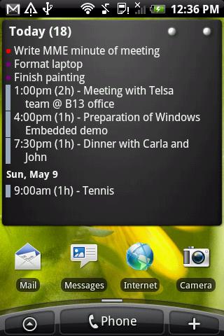 - Show calendars from Google, TouchDown & Moto/LG Exchange