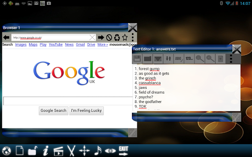 Multiscreen Multitasking is 8 apps in one. This is the closest you'll get to a Windows 8 style 'desktop mode' on your Android, or to the multitasking features on the S3 or Note 2. This doesn't run any app in a window unfortunately - that's not possible due to the way Android is programmed - but it is the closest alternative. I've made a unique browser, notepad, drawpad, map and more, and each can be resized and dragged around the screen so you can do more than one thing at once.