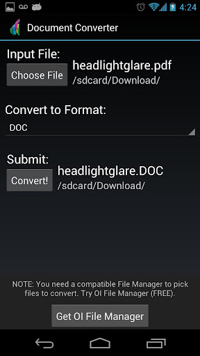 - YOU MUST have an internet connection to use this app. Files are uploaded to the cloud, converted, and then downloaded to your phone.